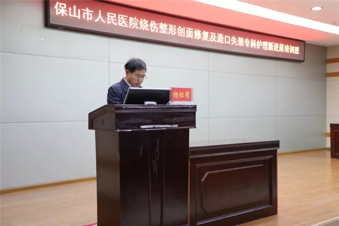 kaiyun体育官方网站副院長楊祖有為(wei) 培訓班開幕致辭:為(wei) 深入開展“不忘初心,牢記使命”主題教育,認真貫徹落實國家醫改政策,促進優(you) 質醫療資源下沉,進一步提高我市對疑難創麵的處理、造口並發症的處理及造口術後心理護理,幫助他們(men) 早日回歸家庭、回歸社會(hui) ,不斷增強人民群眾(zhong) 健康獲得感,在今天的學習(xi) 班上邀請到了省外、省內(nei) 、市知名傷(shang) 口、造口護理專(zhuan) 家給我們(men) 授課。各位專(zhuan) 家有著深厚的學術造詣和豐(feng) 富的臨(lin) 床經驗,將為(wei) 我們(men) 帶來精彩的學術講座,是一次很好的與(yu) 專(zhuan) 家麵對麵的學術交流機會(hui) ,希望我市醫務專(zhuan) 業(ye) 人員要虛心向各位專(zhuan) 家請教學習(xi) ,進一步提高我市傷(shang) 口、造口、失禁護理水平。